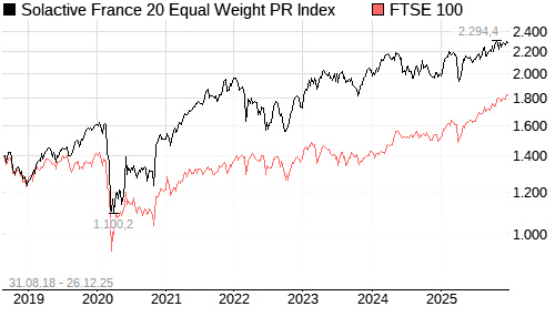 Solactive France 20 Equal Weight PR Index / FTSE 100 Vergleich