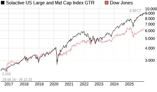 Solactive US Large and Mid Cap Index GTR / Dow Jones Vergleich