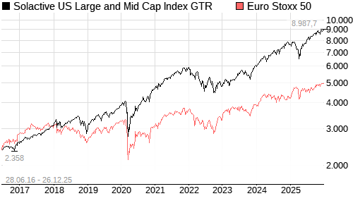 Solactive US Large and Mid Cap Index GTR / Euro Stoxx 50 Vergleich
