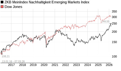 ZKB MeinIndex Nachhaltigkeit Emerging Markets Index / Dow Jones Vergleich