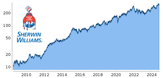 Sherwin-Williams-Aktie um insgesamt 285%, was einem jährlichen Kursgewinn von 18% entspricht.