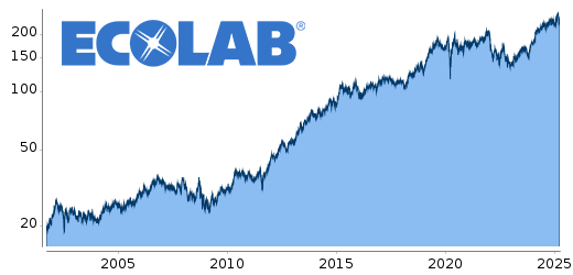 Das Unternehmen betreut inzwischen Kunden aus nahezu allen Bereichen der Wirtschaft: von Hotels und landwirtschaftlichen Betrieben über Großküchen und Krankenhäuser bis hin zu hochspezialisierten Industrien wie der Lebensmittelverarbeitung, Energie- oder Öl- und Gasbranche. Ecolab hilft dabei, Prozesse sauberer, sicherer, effizienter und ressourcenschonender zu gestalten. Für die Kunden bedeutet das: geringere Betriebskosten, mehr Nachhaltigkeit und zugleich Einhaltung höchster Hygienestandards. Und für Ecolab sorgt dies für klingelnde Kassen, was sich auch am Kurs ablesen lässt: In den vergangenen zehn Jahren legte die Aktie im Durchschnitt um 10% pro Jahr zu.