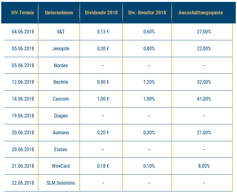 Der Dividendenkalender der TecDAX-Unternehmen für Juni 2018