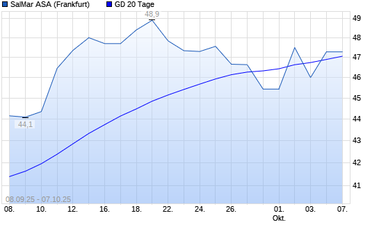 Mit dem Anstieg auf 47,28 EUR hat die Salmar ASA-Aktie am 06.10.2025 die 20-Tage-Linie nach oben gekreuzt.Die Salmar ASA-Aktie befindet sich seit dem 01.09.2025 im langfristigen Aufwärtstrend ...weiterlesen