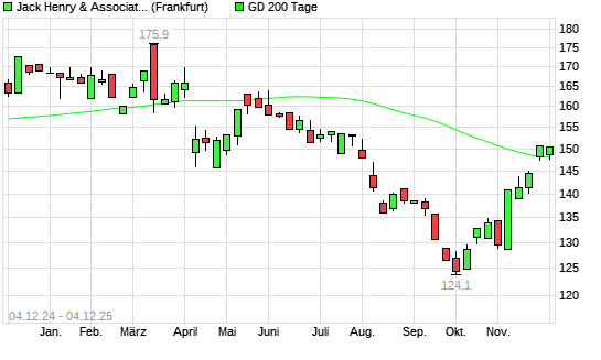 Mit dem Rücksetzer auf 147,70 EUR hat die Jack Henry & Associates-Aktie am 03.12.2025 die 200-Tage-Linie nach unten gekreuzt.Die Jack Henry & Associates-Aktie befand sich seit dem 26.11.2025 ...weiterlesen