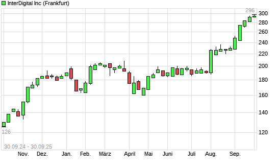 Mit dem Anstieg auf 296,00 EUR hat die Interdigital-Aktie (ISIN US45867G1013) am 29.09.2025 ein neues All-Time-High erreicht und damit den Kurs vom 23.09.2025 eingestellt.Die Interdigital-Aktie ...weiterlesen
