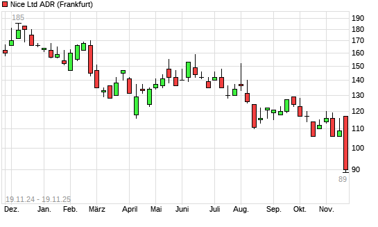 Mit dem Rücksetzer auf 92,50 EUR hat die NICE Systems Limited-Aktie (ISIN US6536561086) am 18.11.2025 ein neues 5-Jahres-Tief erreicht und damit den Kurs vom 17.10.2025 eingestellt.Die ...weiterlesen