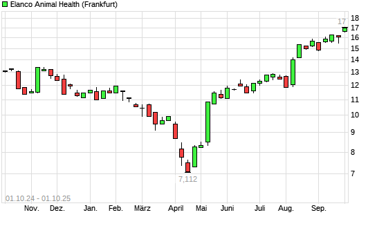 Mit dem Anstieg auf 17,10 EUR hat die Elanco Animal Health-Aktie (ISIN US28414H1032) am 30.09.2025 ein neues 12-Monats-Hoch erreicht und damit den Kurs vom 29.09.2025 eingestellt.Die Elanco ...weiterlesen