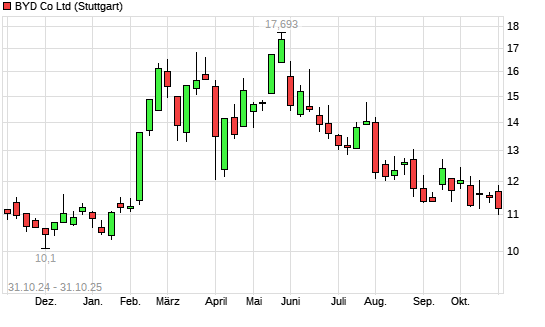 Mit dem Rücksetzer auf 11,33 EUR hat die BYD-Aktie (ISIN CNE100000296) am 30.10.2025 ein neues 6-Monats-Tief erreicht und damit den Kurs vom 10.10.2025 eingestellt.Die BYD-Aktie befindet ...weiterlesen