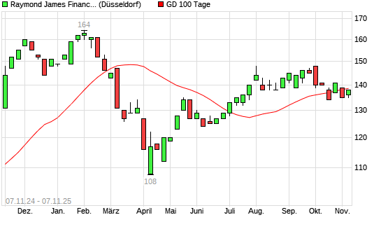Mit dem Anstieg auf 140,00 EUR hat die Raymond James Financial-Aktie am 06.11.2025 die 100-Tage-Linie nach oben gekreuzt.Die Raymond James Financial-Aktie befindet sich seit dem 04.11.2025 im ...weiterlesen