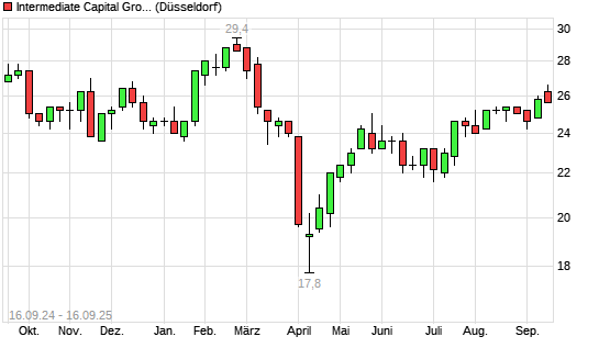 Mit dem Anstieg auf 26,20 EUR hat die Intermediate Capital Group-Aktie (ISIN GB00BYT1DJ19) am 15.09.2025 ein neues 6-Monats-Hoch erreicht und damit den Kurs vom 11.09.2025 eingestellt.Die Intermediate ...weiterlesen