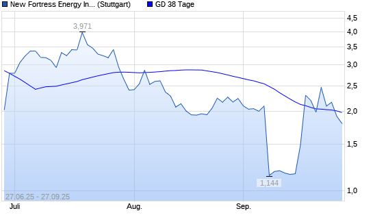 Mit dem Rücksetzer auf 1,92 EUR hat die New Fortress Energy-Aktie am 26.09.2025 die 38-Tage-Linie nach unten gekreuzt.Die New Fortress Energy-Aktie befindet sich seit dem 03.02.2025 im ...weiterlesen