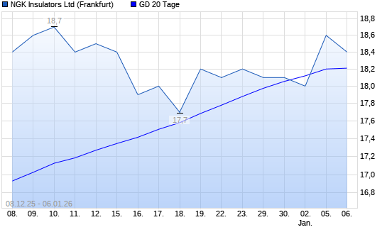 Mit dem Anstieg auf 18,60 EUR hat die NGK Insulators-Aktie am 05.01.2026 die 20-Tage-Linie nach oben gekreuzt.Die NGK Insulators-Aktie befindet sich seit dem 01.08.2025 im langfristigen Aufwärtstrend ...weiterlesen