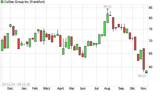 Mit dem Rücksetzer auf 58,12 EUR hat die CoStar-Aktie (ISIN US22160N1090) am 03.11.2025 ein neues 3-Jahres-Tief erreicht und damit den Kurs vom 29.10.2025 eingestellt.Die CoStar-Aktie befindet ...weiterlesen