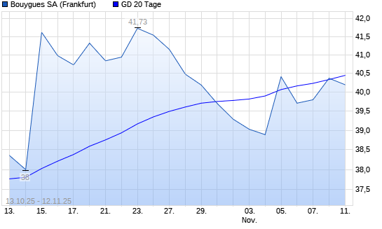 Mit dem Rücksetzer auf 40,20 EUR hat die Bouygues-Aktie am 11.11.2025 die 20-Tage-Linie nach unten gekreuzt.Die Bouygues-Aktie befindet sich seit dem 06.02.2025 im langfristigen Aufwärtstrend ...weiterlesen