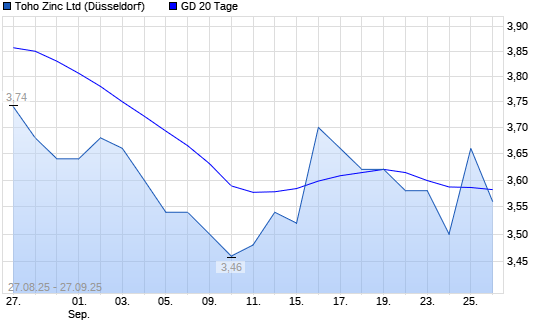 Mit dem Rücksetzer auf 3,60 EUR hat die Toho Zinc-Aktie am 26.09.2025 die 20-Tage-Linie nach unten gekreuzt.Die Toho Zinc-Aktie befindet sich seit dem 25.09.2025 im langfristigen Aufwärtstrend ...weiterlesen