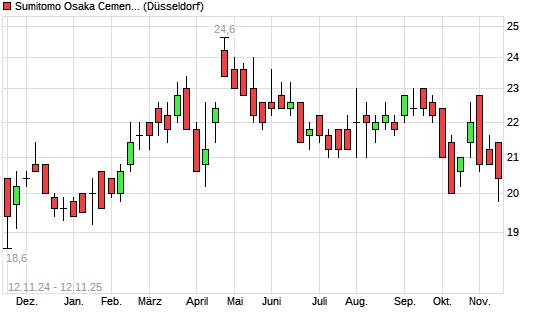 Mit dem Rücksetzer auf 20,00 EUR hat die Sumitomo Osaka Cement-Aktie (ISIN JP3400900001) am 11.11.2025 ein neues 6-Monats-Tief erreicht und damit den Kurs vom 17.10.2025 eingestellt.Die ...weiterlesen