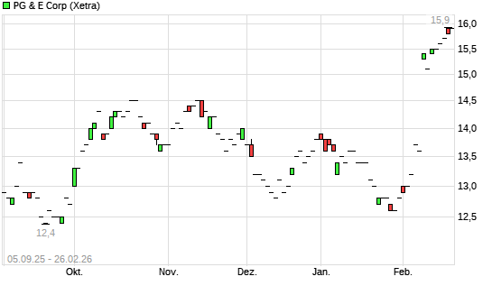 Mit dem Anstieg auf 15,80 EUR hat die Pacific Gas and Electric Company-Aktie (ISIN US69331C1080) am 25.02.2026 ein neues 6-Monats-Hoch erreicht und damit den Kurs vom ...weiterlesen