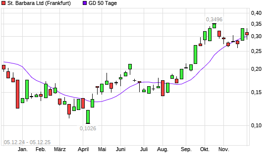 Mit dem Rücksetzer auf 0,29 EUR hat die St. Barbara-Aktie am 04.12.2025 die 50-Tage-Linie nach unten gekreuzt.Die St. Barbara-Aktie befindet sich seit dem 08.08.2025 im langfristigen Aufwärtstrend ...weiterlesen