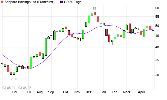 Mit dem Rücksetzer auf 47,60 EUR hat die Sapporo Holdings-Aktie am 02.05.2025 die 50-Tage-Linie nach unten gekreuzt.Die Sapporo Holdings-Aktie befindet sich seit dem 08.04.2025 im langfristigen ...weiterlesen