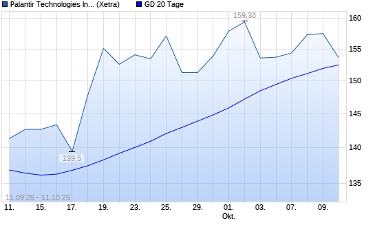 Mit dem Rücksetzer auf 152,00 EUR hat die Palantir Technologies-Aktie am 10.10.2025 die 20-Tage-Linie nach unten gekreuzt.Die Palantir Technologies-Aktie befindet sich seit dem 09.05.2023 ...weiterlesen
