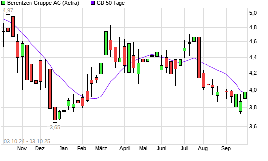 Mit dem Rücksetzer auf 3,87 EUR hat die Berentzen-Aktie am 02.10.2025 die 50-Tage-Linie nach unten gekreuzt.Die Berentzen-Aktie befindet sich seit dem 29.07.2025 im langfristigen Abwärtstrend ...weiterlesen