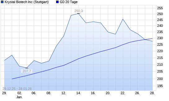 Mit dem Rücksetzer auf 228,90 EUR hat die Krystal Biotech-Aktie am 27.01.2026 die 20-Tage-Linie nach unten gekreuzt.Die Krystal Biotech-Aktie befindet sich seit dem 29.09.2025 ...weiterlesen