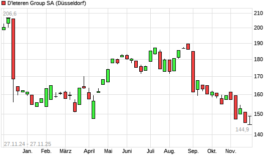 Mit dem Rücksetzer auf 144,60 EUR hat die D'ieteren-Aktie (ISIN BE0974259880) am 26.11.2025 ein neues 12-Monats-Tief erreicht und damit den Kurs vom 21.11.2025 eingestellt.Die D'ieteren-Aktie ...weiterlesen