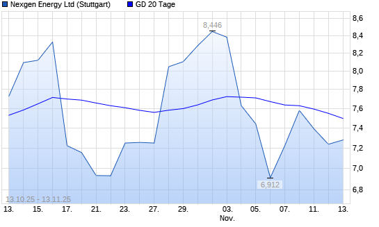 Mit dem Anstieg auf 7,57 EUR hat die Nexgen Energy-Aktie am 12.11.2025 die 20-Tage-Linie nach oben gekreuzt.Die Nexgen Energy-Aktie befindet sich seit dem 25.08.2025 im langfristigen Aufwärtstrend ...weiterlesen