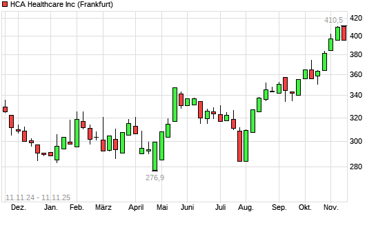 Mit dem Anstieg auf 412,30 EUR hat die HCA Holdings-Aktie (ISIN US40412C1018) am 10.11.2025 ein neues All-Time-High erreicht und damit den Kurs vom 06.11.2025 eingestellt.Die HCA Holdings-Aktie ...weiterlesen