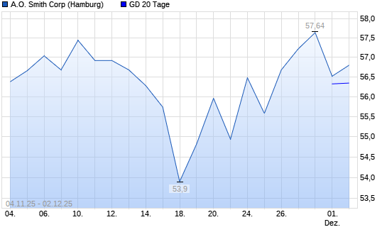 Mit dem Rücksetzer auf 56,28 EUR hat die A.O. Smith-Aktie am 01.12.2025 die 20-Tage-Linie nach unten gekreuzt.Die A.O. Smith-Aktie befindet sich seit dem 23.10.2025 im langfristigen Abwärtstrend ...weiterlesen