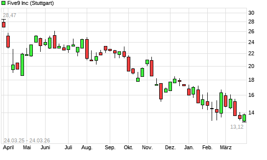 Mit dem Rücksetzer auf 13,18 EUR hat die Five9-Aktie (ISIN US3383071012) am 23.03.2026 ein neues 5-Jahres-Tief erreicht und damit den Kurs vom 06.02.2026 eingestellt.Die ...weiterlesen