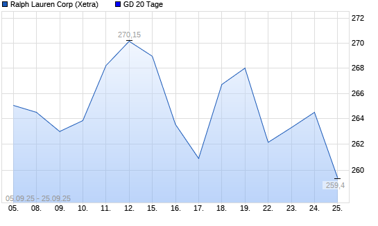 Mit dem Anstieg auf 261,45 EUR hat die Ralph Lauren-Aktie am 24.09.2025 die 20-Tage-Linie nach oben gekreuzt.Die Ralph Lauren-Aktie befindet sich seit dem 05.05.2025 im langfristigen Aufwärtstrend ...weiterlesen