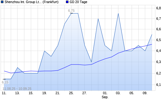 Mit dem Rücksetzer auf 6,40 EUR hat die Shenzhou International Group-Aktie am 09.09.2025 die 20-Tage-Linie nach unten gekreuzt.Die Shenzhou International Group-Aktie befindet sich seit ...weiterlesen