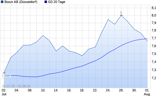 Mit dem Rücksetzer auf 7,70 EUR hat die BOOZT AB-Aktie am 01.08.2025 die 20-Tage-Linie nach unten gekreuzt.Die BOOZT AB-Aktie befindet sich seit dem 14.03.2025 im langfristigen Abwärtstrend ...weiterlesen