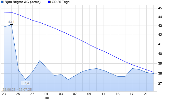 Mit dem Anstieg auf 38,40 EUR hat die Bijou Brigitte-Aktie am 21.07.2025 die 20-Tage-Linie nach oben gekreuzt.Die Bijou Brigitte-Aktie befindet sich seit dem 17.07.2025 im langfristigen Aufwärtstrend ...weiterlesen