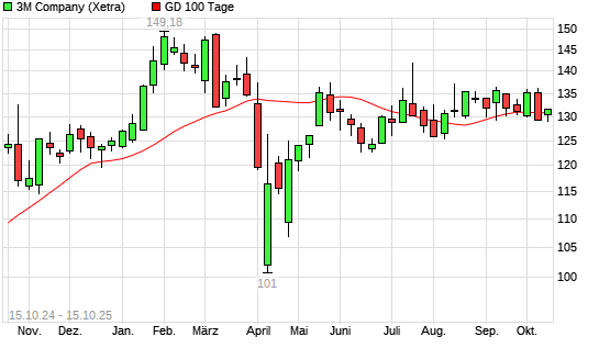 Mit dem Anstieg auf 131,28 EUR hat die 3M-Aktie am 14.10.2025 die 100-Tage-Linie nach oben gekreuzt.Die 3M-Aktie befindet sich seit dem 09.10.2025 im langfristigen Abwärtstrend und hat in diesem ...weiterlesen
