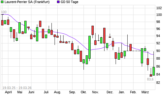 Mit dem Rücksetzer auf 89,00 EUR hat die Laurent-Perrrier-Aktie am 18.03.2026 die 50-Tage-Linie nach unten gekreuzt.Die Laurent-Perrrier-Aktie befindet sich seit dem 14.01.2026 ...weiterlesen