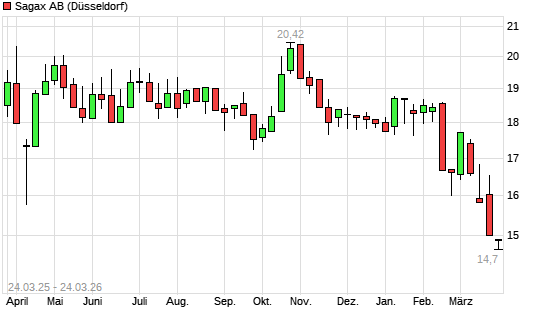 Mit dem Rücksetzer auf 14,65 EUR hat die AB SAGAX B-Aktie (ISIN SE0005127818) am 23.03.2026 ein neues All-Time-Low erreicht und damit den Kurs vom 13.10.2022 eingestellt.Die AB ...weiterlesen