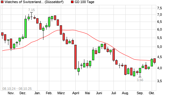 Mit dem Rücksetzer auf 4,32 EUR hat die Watches of Switzerland-Aktie am 07.10.2025 die 100-Tage-Linie nach unten gekreuzt.Die Watches of Switzerland-Aktie befindet sich seit dem 10.03.2025 ...weiterlesen