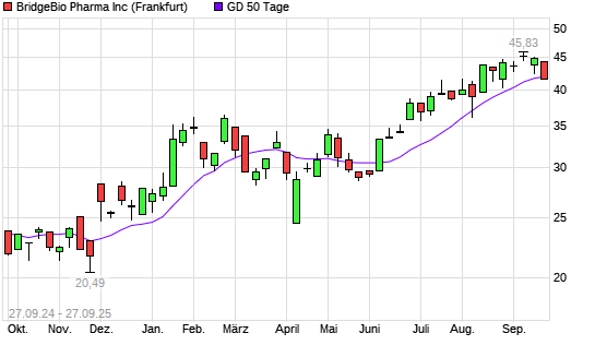Mit dem Rücksetzer auf 42,28 EUR hat die BridgeBio Pharma-Aktie am 26.09.2025 die 50-Tage-Linie nach unten gekreuzt.Die BridgeBio Pharma-Aktie befindet sich seit dem 10.04.2025 im langfristigen ...weiterlesen