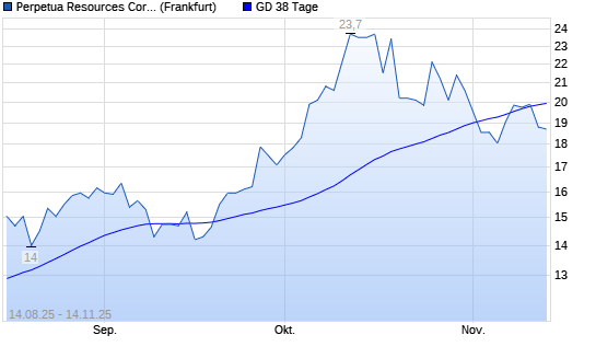 Mit dem Rücksetzer auf 18,80 EUR hat die Perpetua Resources-Aktie am 13.11.2025 die 38-Tage-Linie nach unten gekreuzt.Die Perpetua Resources-Aktie befindet sich seit dem 04.07.2025 im langfristigen ...weiterlesen