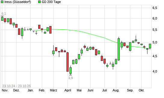 Mit dem Anstieg auf 4,82 EUR hat die Iress-Aktie am 22.10.2025 die 200-Tage-Linie nach oben gekreuzt.Die Iress-Aktie befand sich seit dem 21.10.2025 im langfristigen Abwärtstrend und hat in ...weiterlesen