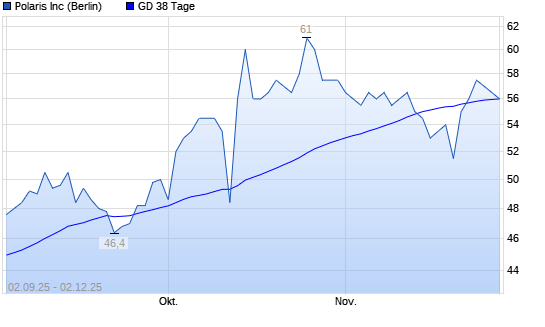 Mit dem Rücksetzer auf 55,50 EUR hat die Polaris-Aktie am 01.12.2025 die 38-Tage-Linie nach unten gekreuzt.Die Polaris-Aktie befindet sich seit dem 12.08.2025 im langfristigen Aufwärtstrend ...weiterlesen