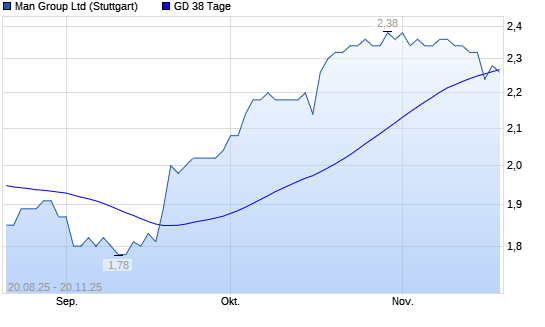 Mit dem Rücksetzer auf 2,26 EUR hat die Man Group-Aktie am 19.11.2025 die 38-Tage-Linie nach unten gekreuzt.Die Man Group-Aktie befindet sich seit dem 14.10.2025 im langfristigen Aufwärtstrend ...weiterlesen