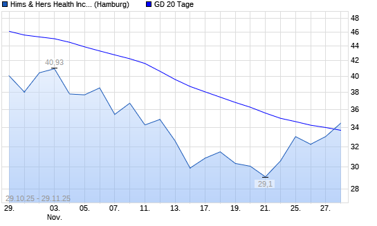 Mit dem Anstieg auf 33,95 EUR hat die Hims & Hers Health A-Aktie am 28.11.2025 die 20-Tage-Linie nach oben gekreuzt.Die Hims & Hers Health A-Aktie befindet sich seit dem 28.10.2025 im langfristigen ...weiterlesen