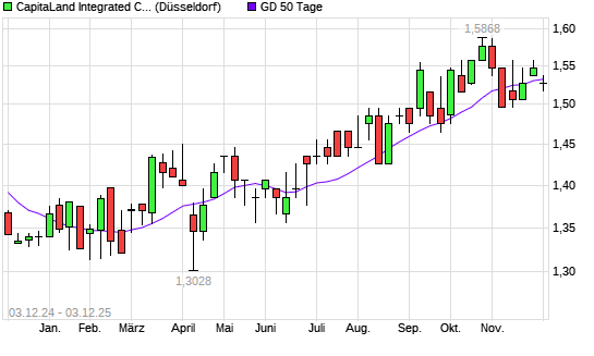 Mit dem Rücksetzer auf 1,53 EUR hat die CapitaLand Mall Trust-Aktie am 02.12.2025 die 50-Tage-Linie nach unten gekreuzt.Die CapitaLand Mall Trust-Aktie befindet sich seit dem 25.06.2025 ...weiterlesen