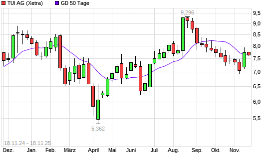 Mit dem Rücksetzer auf 7,60 EUR hat die TUI-Aktie am 17.11.2025 die 50-Tage-Linie nach unten gekreuzt.Die TUI-Aktie befindet sich seit dem 12.11.2025 im langfristigen Aufwärtstrend und ...weiterlesen