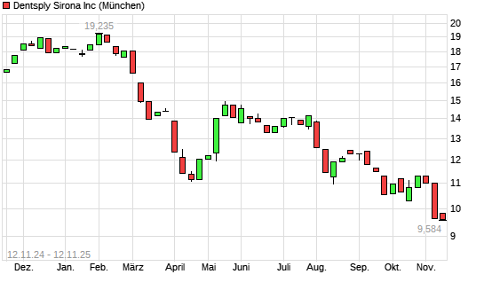 Mit dem Rücksetzer auf 9,40 EUR hat die Dentsply Sirona-Aktie (ISIN US24906P1093) am 11.11.2025 ein neues All-Time-Low erreicht und damit den Kurs vom 10.11.2025 eingestellt.Die Dentsply ...weiterlesen