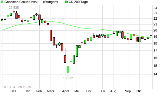 Mit dem Anstieg auf 19,12 EUR hat die Goodman Group Units-Aktie am 27.10.2025 die 200-Tage-Linie nach oben gekreuzt.Die Goodman Group Units-Aktie befand sich seit dem 21.08.2025 im langfristigen ...weiterlesen
